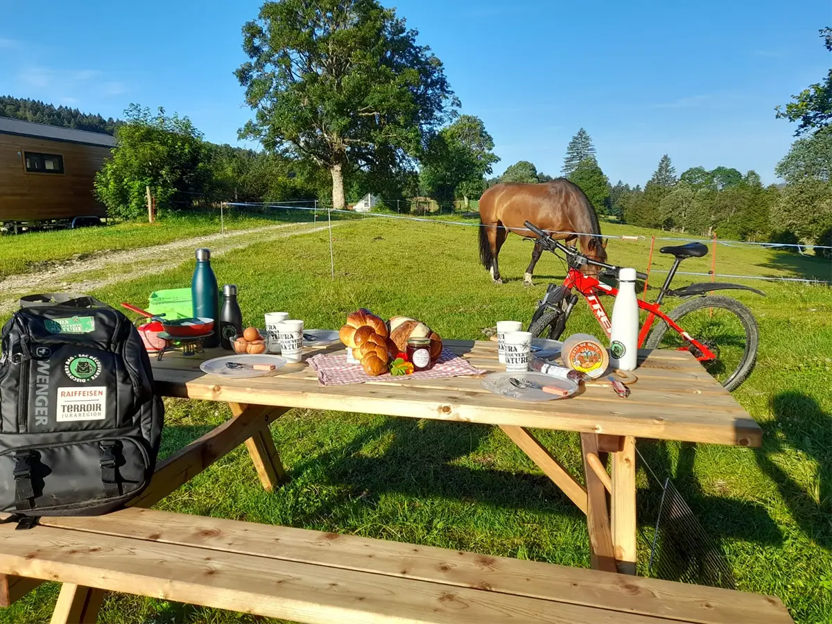 Si vous louez des vélos à la La ForgeÔvélo, à Saignelégier, pensez à venir chercher vos sacs brunch avant votre balade (à 5 minutes en voiture) ou démarrez votre itinéraire en partant en direction du Cerneux-Belin.